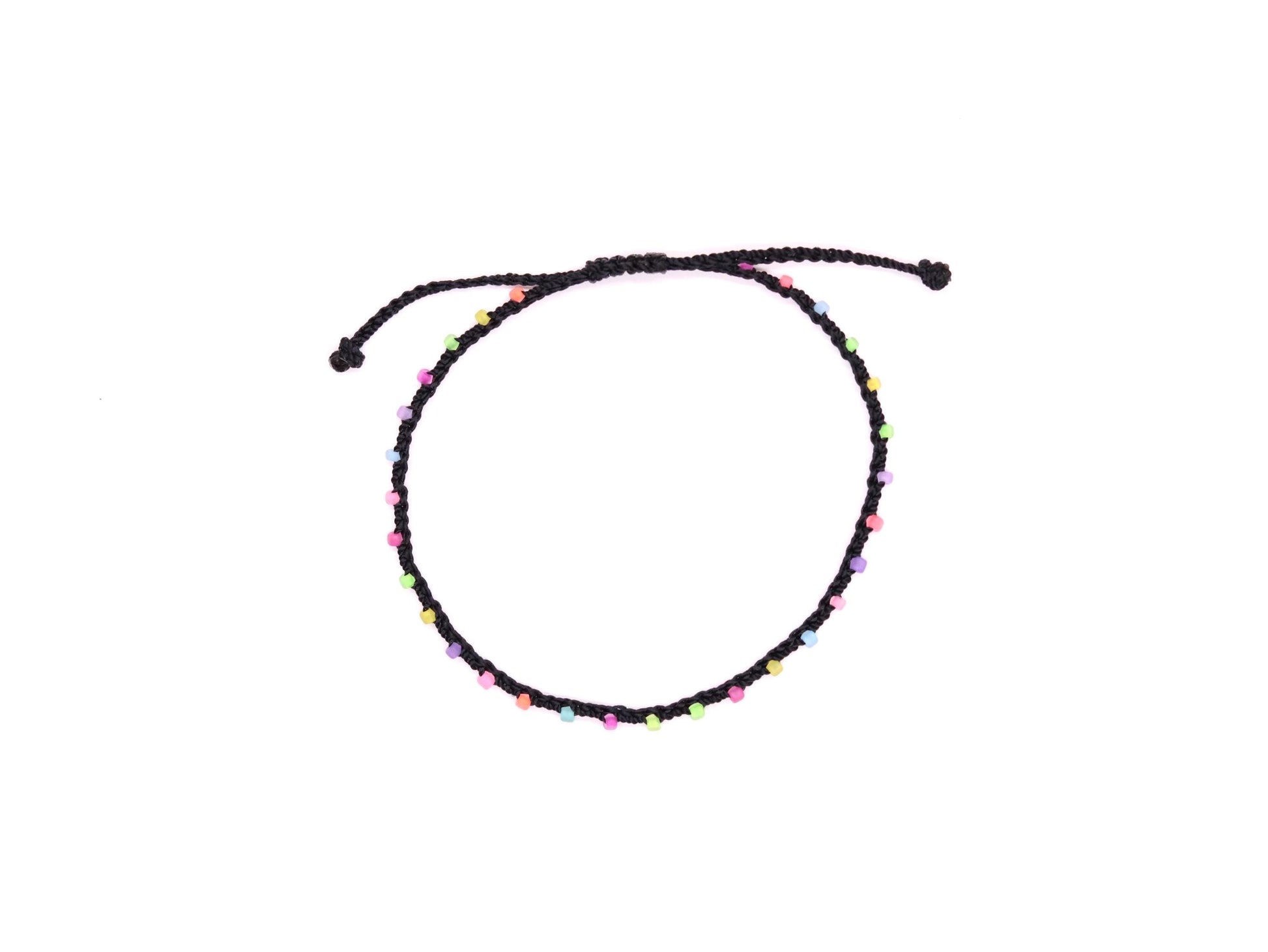 ♡This listing is for one dainty seed bead bracelet or anklet in the color Black & Multi Color Frost beads. In the size, closure style and card of your choice♡