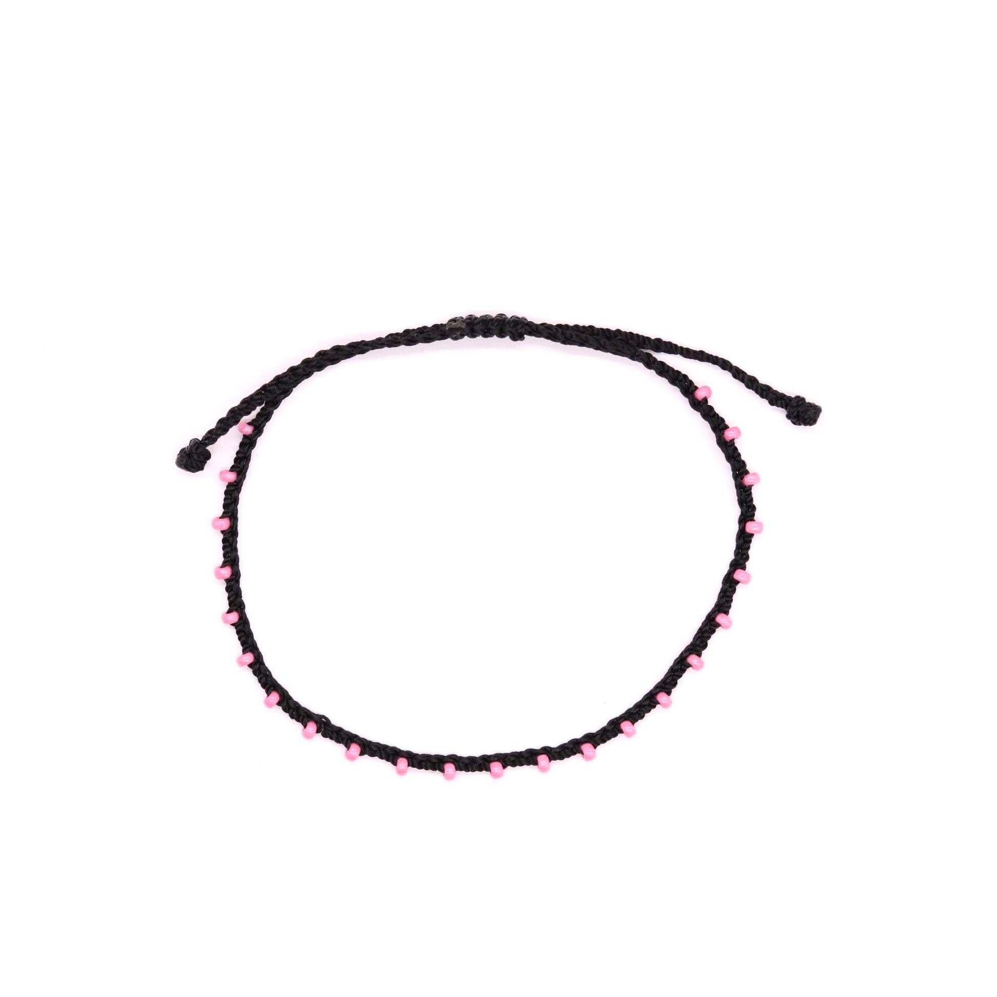 ♡This listing is for one dainty seed bead bracelet or anklet in the color Black & Pink beads. In the size, closure style and card of your choice♡