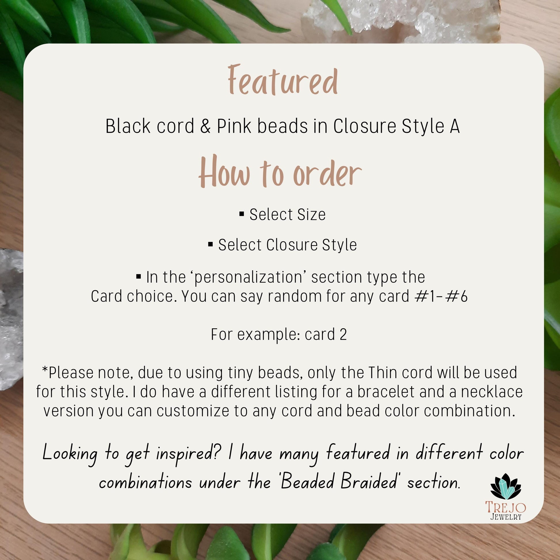 •Closure Styles: All styles have an adjustable macramé sliding knot, which makes it easy to adjust the tightness to your liking. Please note if double sliding knots (closure C) is selected, they will be a tad smaller number of beads this specific closure style.